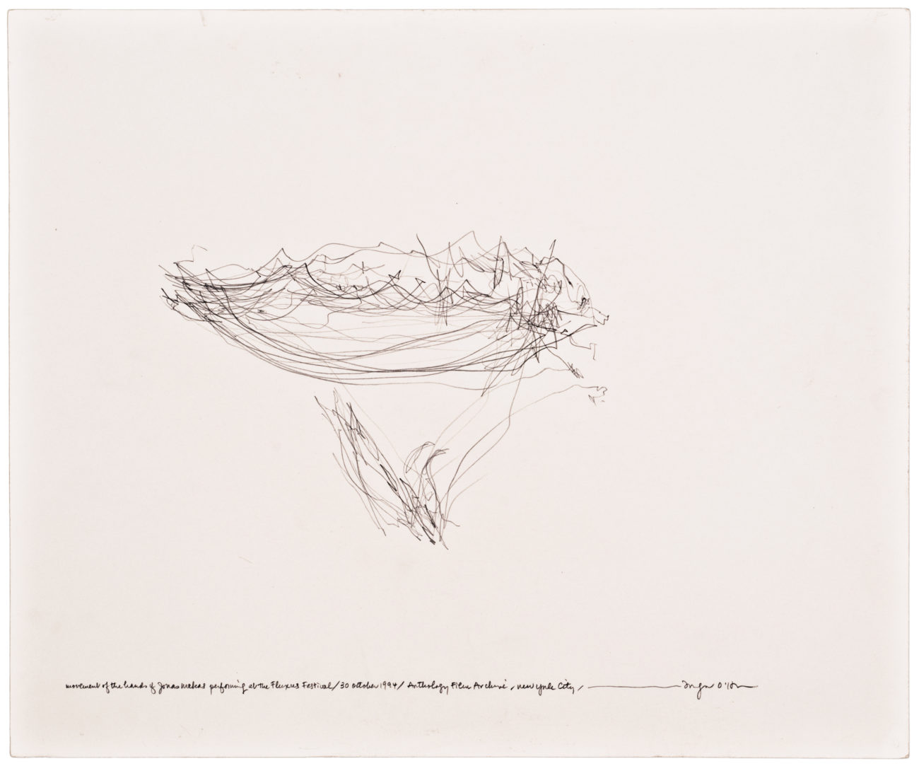 movement of the hands of JONAS MEKAS performing at the Fluxus Festival / Anthology