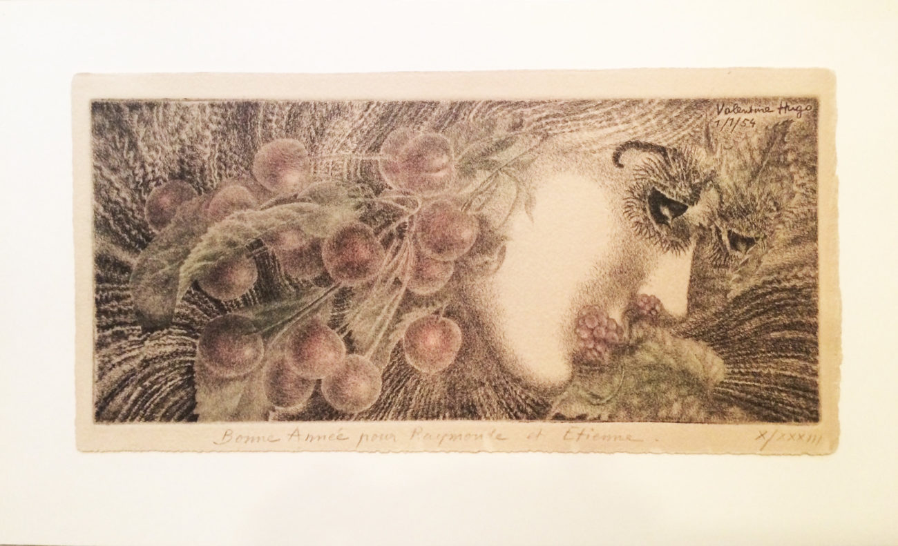 Valentine Hugo, New Year’s Greeting, 1954, Hand-colored lithograph, X/XXXIII, personally inscribed