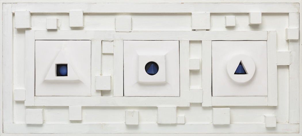 Stages of Life, 1956, plaster, oil, canvas and wood on masonite, 25 x 56 x 6 inches