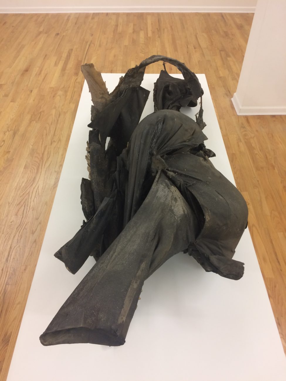Leander, 1961, fabric, sand, polyester resin, 32 x 42 x 8 inches