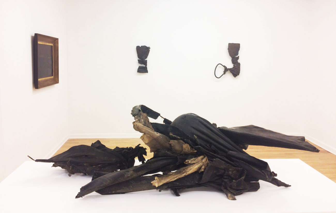 Title unknown, 1962, polyester resin-impregnated tuxedos, welded iron armature, 23 x 80 x 30 inches