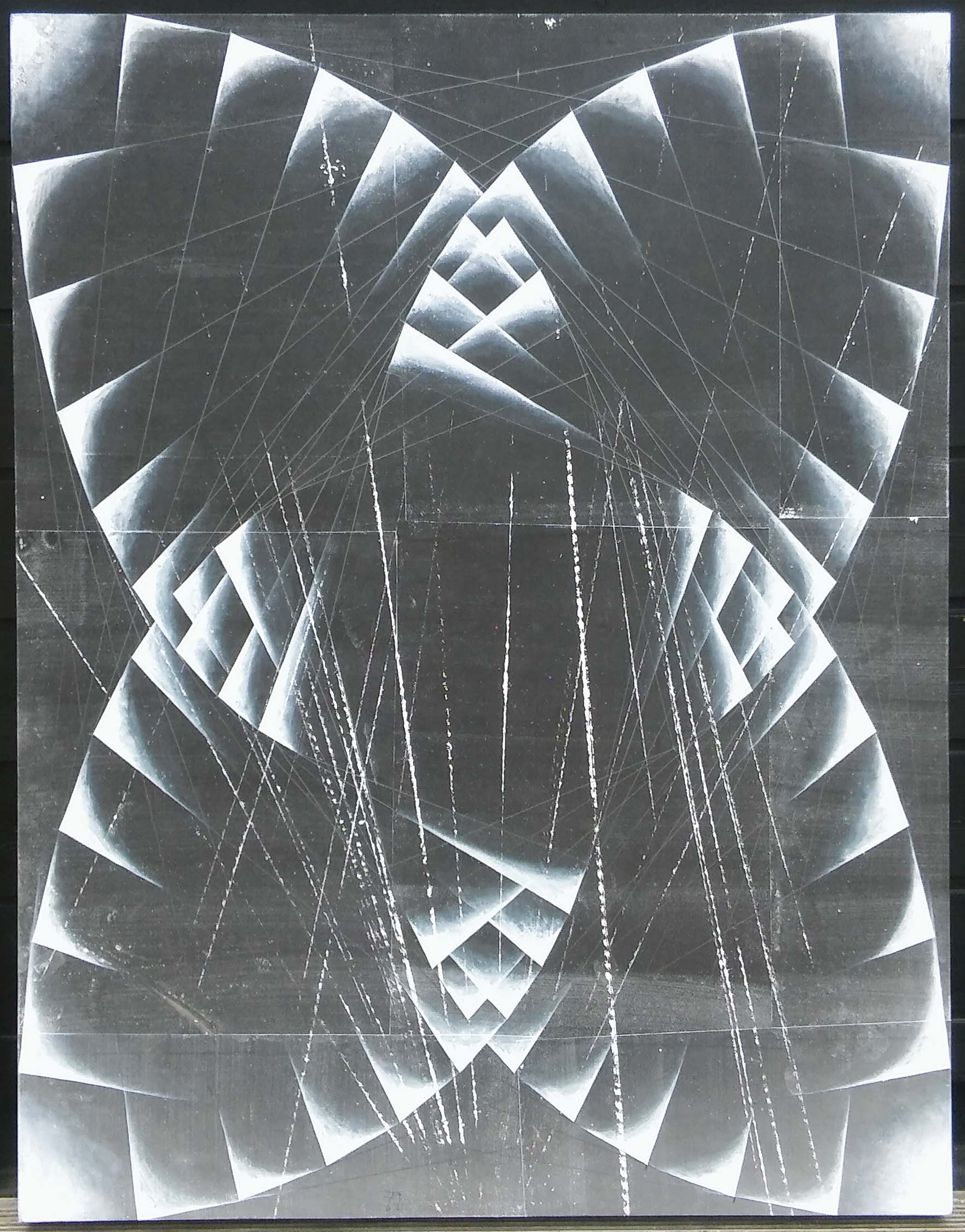 Shrinking Corners, 2016, egg tempera on photogram on wood, 90 x 70 cm